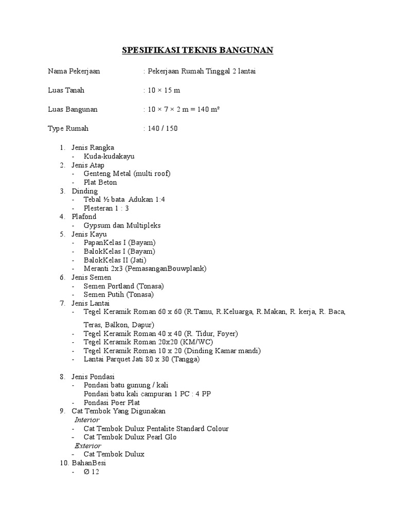 Spesifikasi Teknis Bangunan Pdf